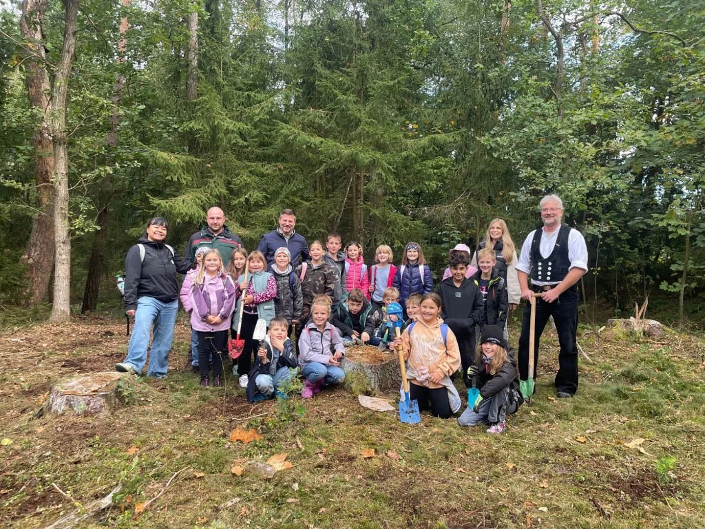 Mit Unterstützung von Richard Kurz und dem 1. Bürgermeister Herrn Neumeier griffen die Kinder selbst zum Spaten und setzten die kleinen Setzlinge in die Erde. Fachkundige Begleitung erhielten sie dabei von Thomas Hebauer vom Forstrevier I (AELF Schwandorf), der anschaulich erklärte, warum Bäume so wichtig für unser Klima sind und geduldig alle Fragen der neugierigen Drittklässler beantwortete.