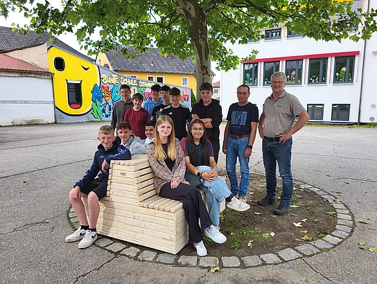Alle hatten Spaß bei der Arbeit und packten fleißig mit an. Natürlich wurde das fertige Produkt nach dem Zusammenbau auch gleich getestet. Mittlerweile steht die Bank im Pausenhof der Mittelschule für die Jugendlichen bereit.