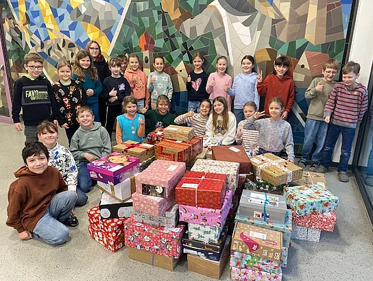 Auch in diesem Jahr beteiligte sich die Grund-und Mittelschule Schwarzenfeld wieder an der Aktion „Geschenk mit Herz“ – und das mit überwältigendem Erfolg. Dank der großartigen Hilfsbereitschaft konnten insgesamt 151 liebevoll gepackte Päckchen ( davon 42 aus Stulln) auf den Weg gebracht werden.
