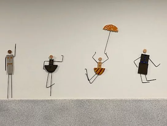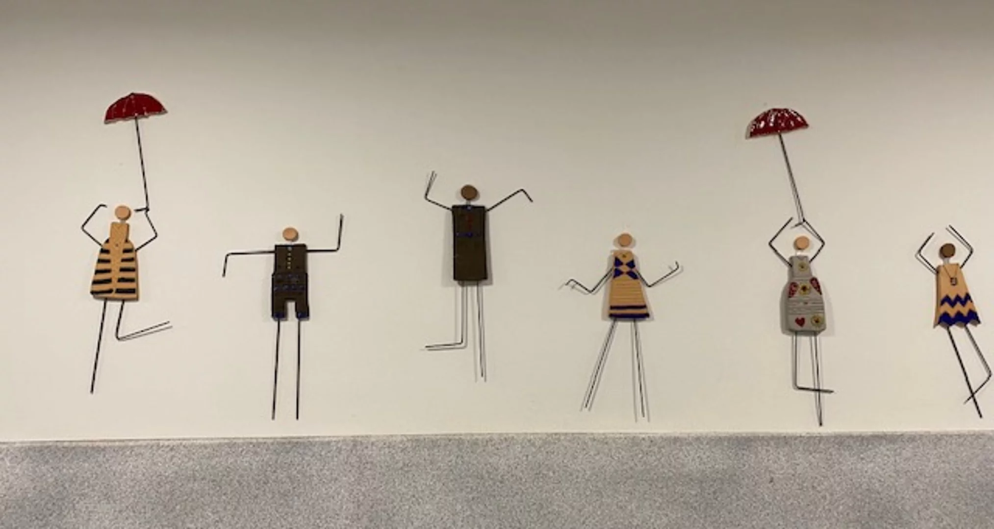 In diesem Schuljahr wurden die Arbeiten fertiggestellt. Eine besondere Herausforderung stellte das Formen der Arme und Beine dar, für die pulverbeschichtete Eisenstäbe zum Einsatz kamen. Mit großer Sorgfalt wurden diese angebracht. Das Bohren der Löcher an den Wänden durch den Bauhof ermöglichte schließlich die dauerhafte Installation der Kunstwerke.