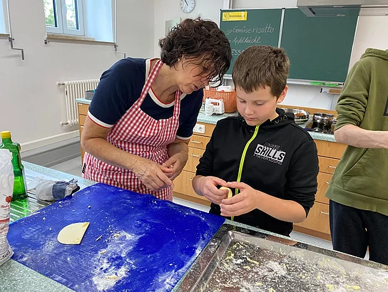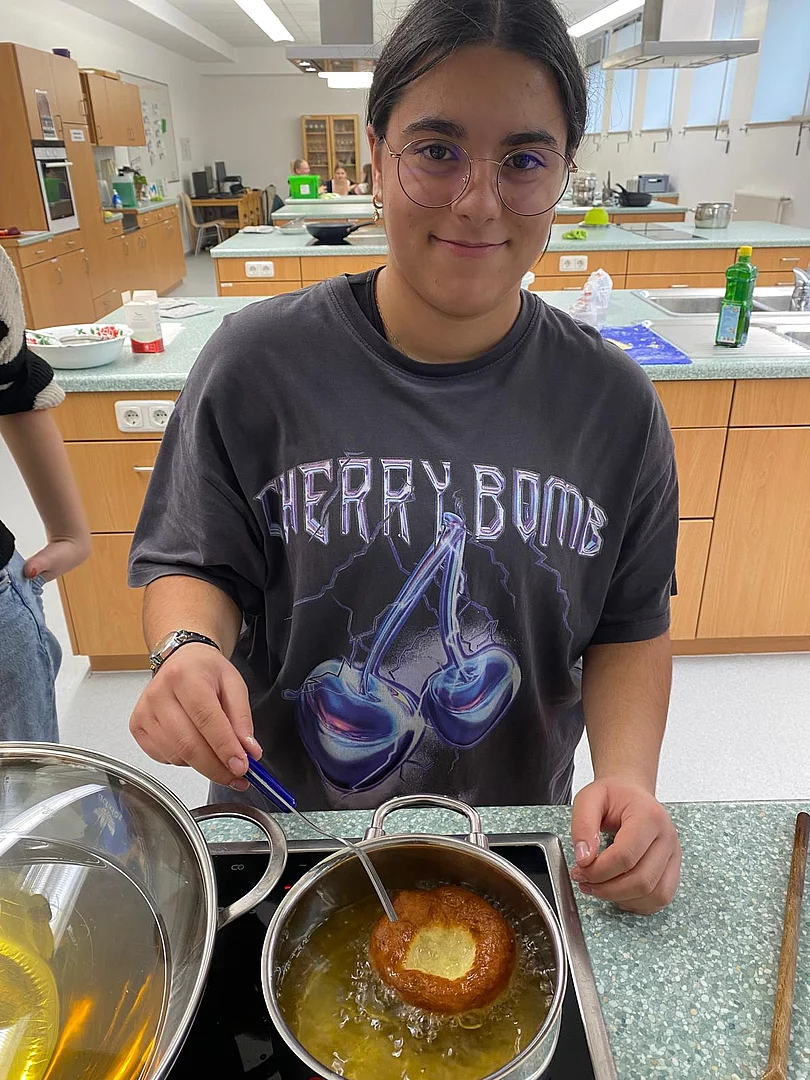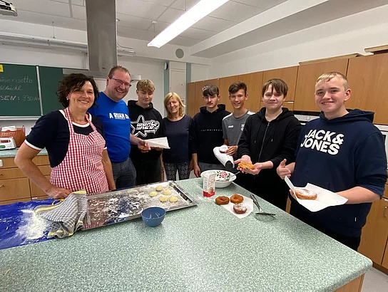 Traditionelles bayerisches „Kiachlausbacka“ in der Abschlussklasse 9aG und 8aG