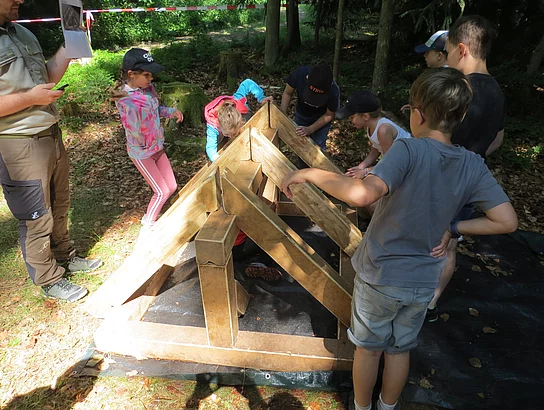 • Dachstuhlbau: Acht Kinder pro Klasse bauten mit viel Fingerspitzengefühl ein stabiles Konstrukt.