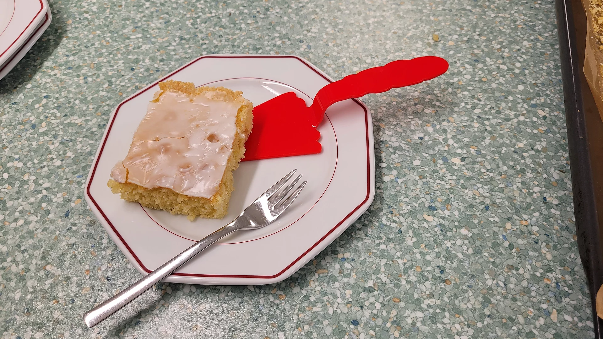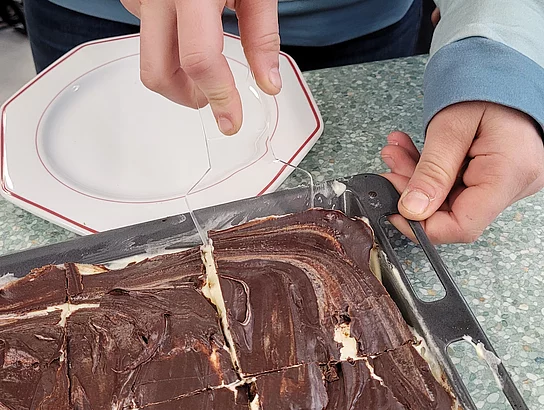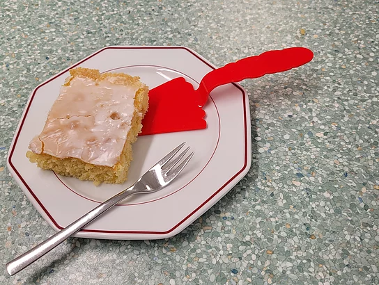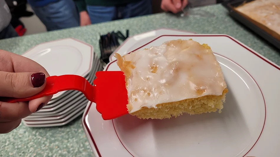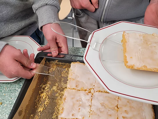 Im Rahmen des Technikunterrichts entwickelten die Schülerinnen und Schüler einen Kunststoff-Tortenheber. Ausgehend von ersten Entwürfen erstellten sie eigenständig Skizzen und Design-Modelle und überführten diese in konkrete Formen. Ein Heißluftfön wurde zur Formgebung des Griffs und der Kuchenauflage eingesetzt. Die Aufgabenverteilung zeigte eine gelungene fächerübergreifende Kooperation: Die Gruppe des Fachs Ernährung und Soziales bereitete als Testmaterial eine Donauwelle und einen Zitronenkuchen zu. So konnten die Tortenheber praxisnah erprobt und hinsichtlich Handhabung, Stabilität und Benutzerfreundlichkeit bewertet werden. Abschließend wurden die Ergebnisse reflektiert, Feedback gesammelt und mögliche Optimierungen diskutiert.