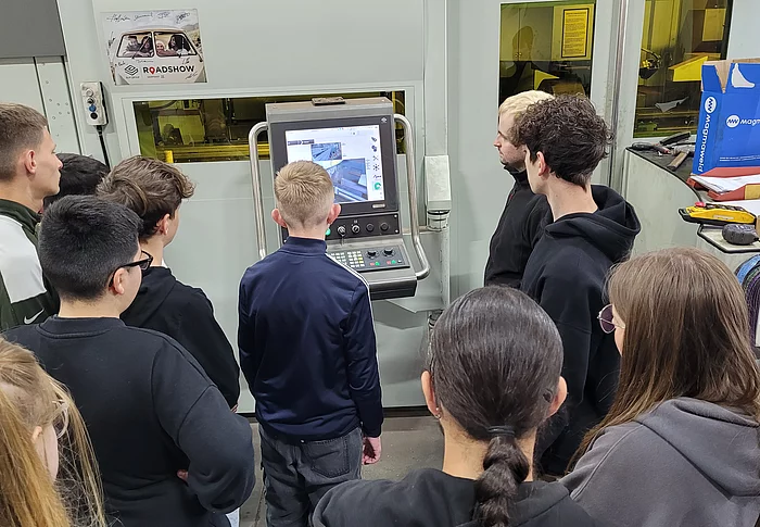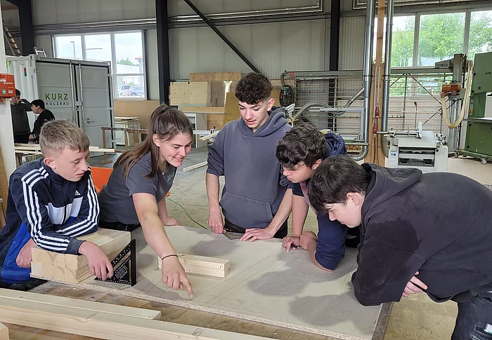 Im Rahmen eines „Praxis an Mittelschulen-Projekts“ besichtigte die Technik-Gruppe der 7. Klasse bereits im April den Betrieb Holzbau Kurz. Jetzt folgte der Praxistag für die 8. Klasse im Unternehmen.