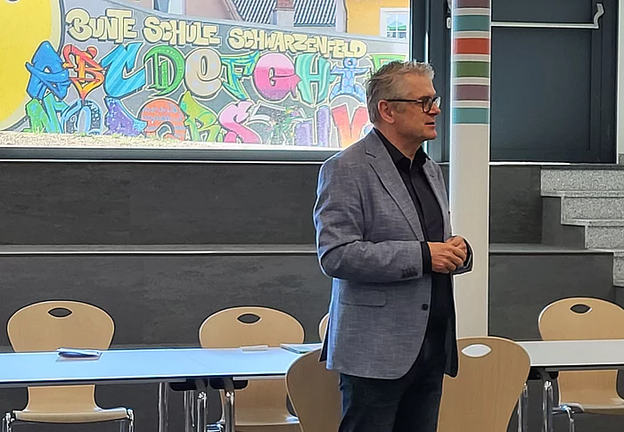 Am Montag, dem 28.04.2025, besuchte Herr Martin Scharf die 7., 8. und 9. Klasse der Mittelschule Schwarzenfeld und berichtete den Schülern vieles von seiner Arbeit als Mitglied des bayerischen Landtags.